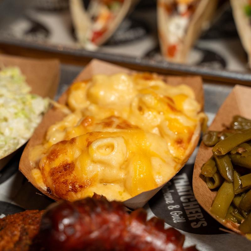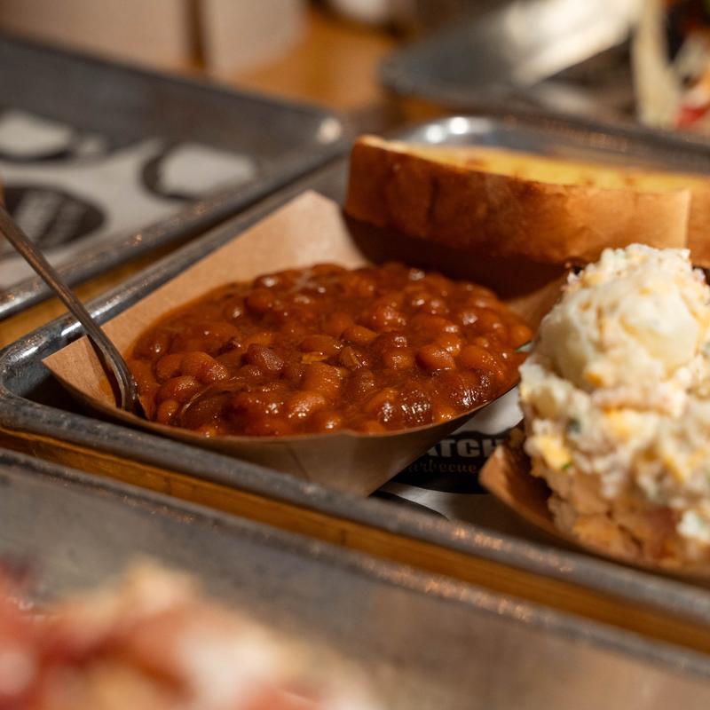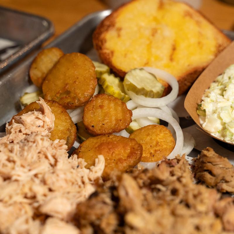 Our BBQ and dinner plates come with your choice (3) of the following side options and Texas toast • Side choices: Baked Beans, Loaded Potato Salad, Cole Slaw, Brunswick Stew, French Fries, Tater Tots, Onion Rings, Fried Pickles, Fried Okra, Pinto Beans, Mel's Sweet Green Beans, Collards, Mel's Mac N Chez, Mashed Potatoes, Sugared Sweet Potato Tots, Fried Green Tomatoes, Creamed Corn or Side Salad